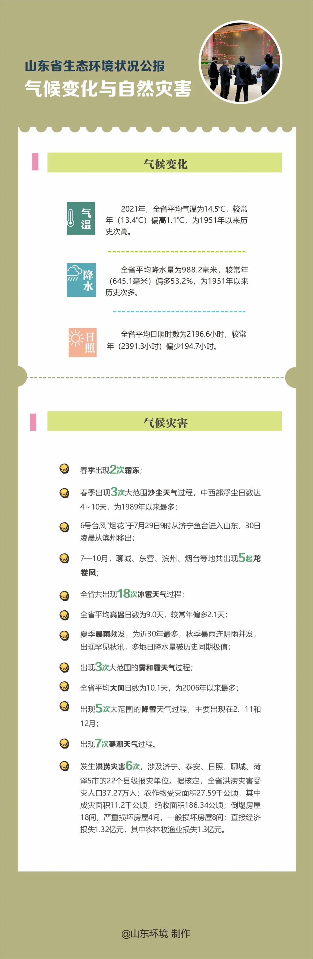 6月6日,省政府新聞辦舉行新聞發布會,發布《2021年山東省生態環境狀況公報》。2021年,全省生態環境質量持續改善,達到有監測記錄以來的更好水平,生態環境保護實現“十四五”起步之年良好開局。